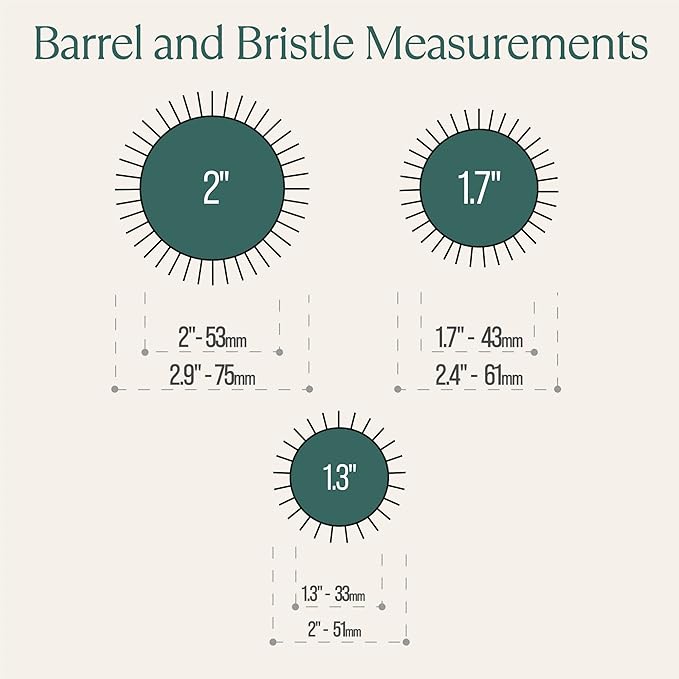 - Suitable for Every Destination - Our round brush for blow drying set comes in three different barrel sizes (1.3”, 1.7”, and 2”) a travel must haves. The small round brush with 1.3” diameter is perfectly designed to add volume and even a bit of curl while blow drying, while the 1.7” brush adds just the right amount of volume that’s big enough to flatter without looking ridiculous or overdone, and the 2” brush is perfect for giving your hair big, loose waves and also great for creating sleek looks.