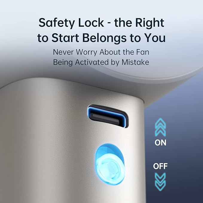 - Digital Display - Power Reminder: This portable fan for travel is equipped with a high-definition digital display screen, which can show the current wind speed and remaining battery power, so you no longer need to worry about the remaining power of the fan. When the battery of this mini fan is low, you can arrange for charging in advance, ensuring a cool companion on every trip