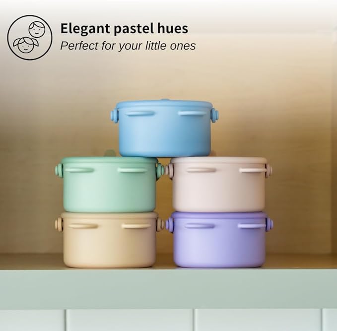 - Munch on the Move with Ease: Our 4.2” silicone snack cup promises easy handling and effortless on-the-move munching; The petal-like opening on these baby snack cups welcomes those little fingers, making snacking a breeze every time