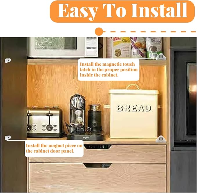 - Durable Material: The shell of the magnetic touch latch is made of ABS material, strong and stable, wear-resistant and durable. High quality magnets and iron sheets provide strong suction and prevent them from falling off easily.