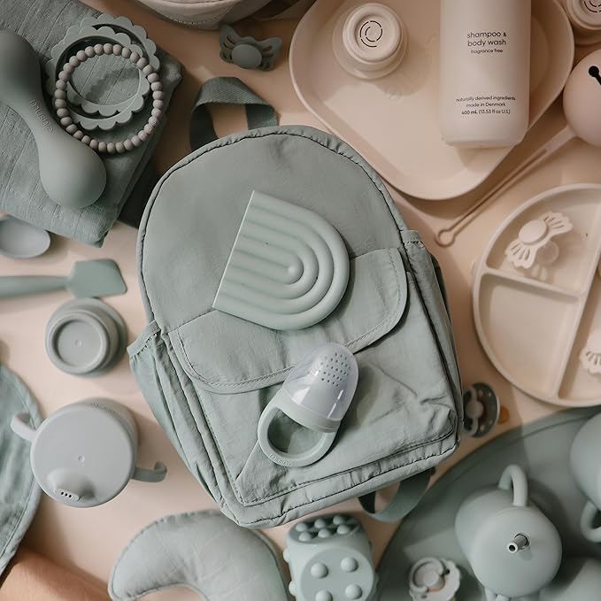- Sofe & Soft Silicone: Made from food grade silicone and featuring an easy-to-clean, two-piece design, this feeder will quickly become a favorite for at-home meals or on-the-go snacks. Its handle is easily held by little fingers as the small holes release the right amount of fresh or frozen favorites from its soft but sturdy design. All mushie Fresh Food Feeders are Prop 65 and CPSIA Complaint.