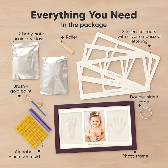 - Ideal Baby Shower Gift - If you are looking for baby registry items, our baby hand and footprint kit is an ideal choice! It captures cute memories and includes all you need, no additional purchases required to complete this Duo Baby Keepsake Frame.
