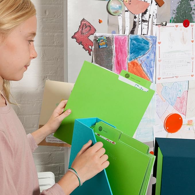 Savor | Deluxe School Years Keepsake Box | Fabric Bound Acid-Free Childhood Memory Organizer with Labels for Birthday, Graduation, Mitzvah, Mother’s Day, and Baby Shower (Ocean, Harper)