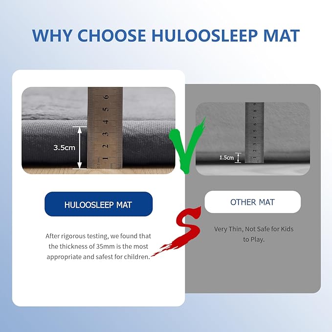 - 【FITS TO MULTIPLE OCCASION】:It can be used as a yoga mat for exercise, a tatami rug for a traditional Japanese style. It provides a comfortable spot for adults to relax and watch TV, as well as a pet-friendly cushion for your furry friends to sleep on. The design helps absorb sound, reducing noise in busy homes. With a thickness of 35mm, this kids' play mat ensures your bedroom or living room is an incredibly comfortable personal space. Unlike most baby play mats made of solid plastic that clash with home decor, the HulooSleep Crawling Mat elegantly addresses this issue