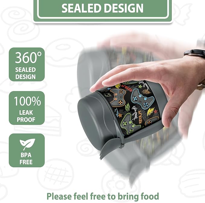 - Leak Proof Design: Feel confident that our leak-proof food jars will fit in your lunch bag without worrying about spilling messes. The insulated thermo food jar comes with a food-grade spoon for your child's convenience.