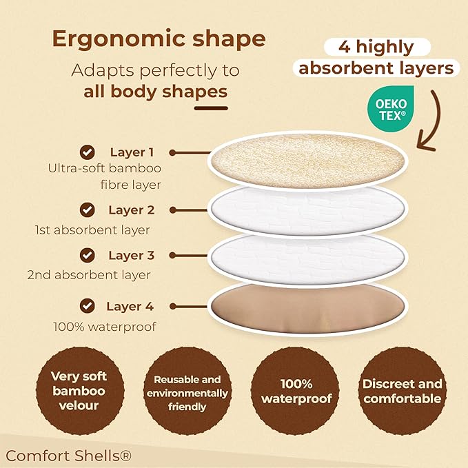 Comfort Shells® Reusable Nursing Pads – 14 Pack Ultra Soft Breast Pads + Laundry Bag + Nursing Clip Bracelet – Washable, Hypoallergenic – Absorbs Breast Milk Leaks