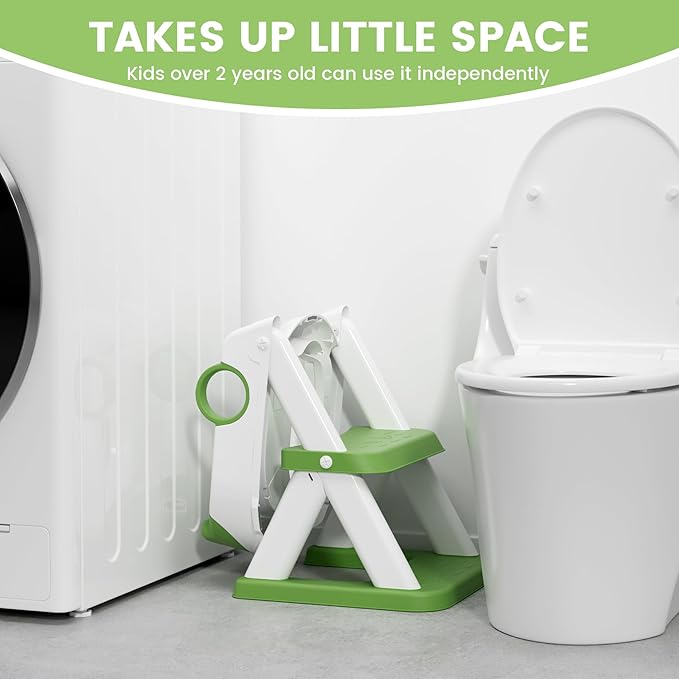 - 2-in-1 Usage : Our multifunctional toilet seat can be used as a step stool for children to reach higher places in addition to being a training toilet ladder. It is convenient for your kids to wash their hands or take things. The product is light and convenient for children to carry by themselves, and the foldable design makes it easy to store.