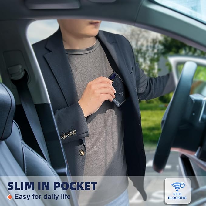 - CAPACITY-Pop-up metal Case in flipping leather shell,9 card slots (including 1 ID window) and metal money clip for couple of bills;