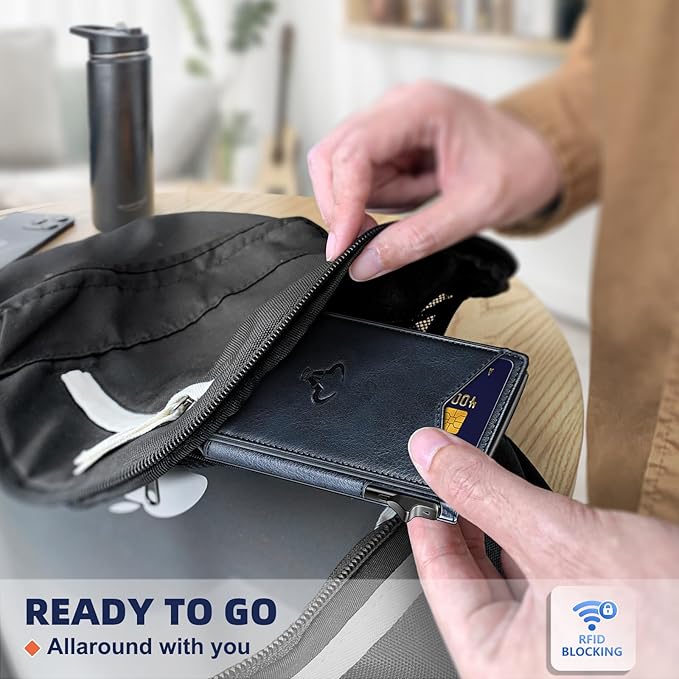 BULLIANT Men Wallet,Money Clip Wallet Slim For Gift Men 9Cards-Metal Credit Card Case in Magnetic Leather Flip