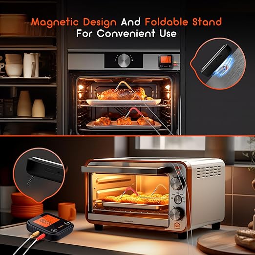 - Smart APP for Easy Cooking at Home: The BBQ thermometer supports 29 USDA preset meat menus with USDA recommendations,which can make everyone become a master cook at home. Smart APP with customizable food temperatures and cooking times make it easy and effortless to grill. Multiple alarms such as target temperature alarms, pre-temperature alarms, high & low temperature alarms, etc. to help you avoid undercooked and overcooking to serve your family and friends a delicious and aromatic meal