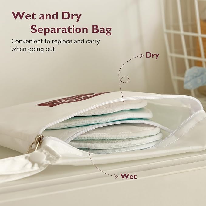 - 【Wet and Dry Separation Bags】The wet and dry separation bags provided with these nipple pads have a leak-proof design, which can effectively separate dry breast pads from wet breast pads without getting the dry breast pads wet, reducing the difficulty of carrying and storing them when going out. No worries, you can change and carry it anytime and anywhere.