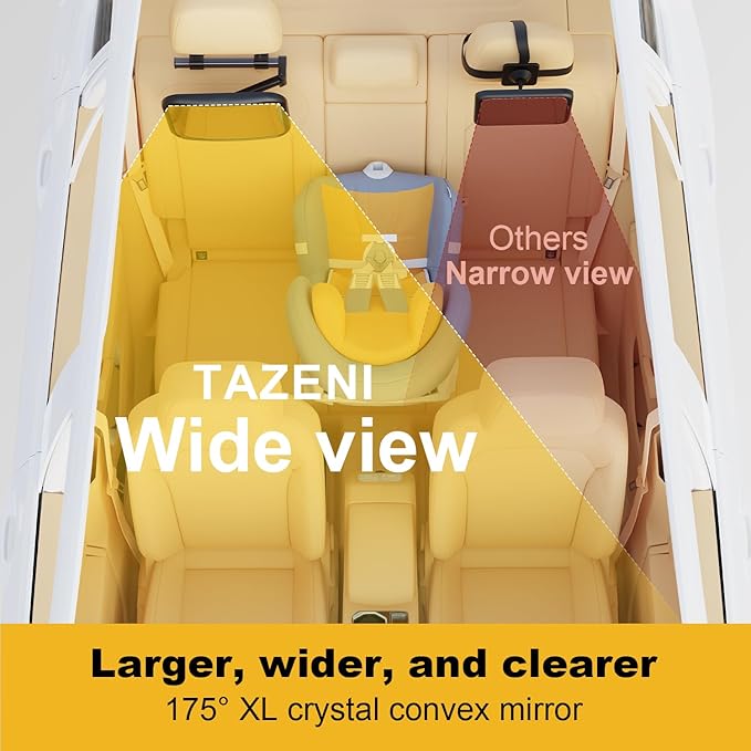 - [Ultra-clear & Wider Field of View] The baby car mirror makes it easy and clear to see your baby while driving. The car mirror for baby magnifies the baby's image with the 175° curved surface design. You don't have to look back at the baby but see everything in the back seat in the rear view mirror with just a glance. Focus on the road and drive more safely.