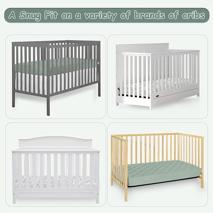- QUILTED AND SOFT FABRIC - Made of soft and breathable fabric which makes our crib mattress protector comfortable to touch, especially perfect for baby delicate skin. The quilted process increases air flow and helps regulate sleeping temperature.