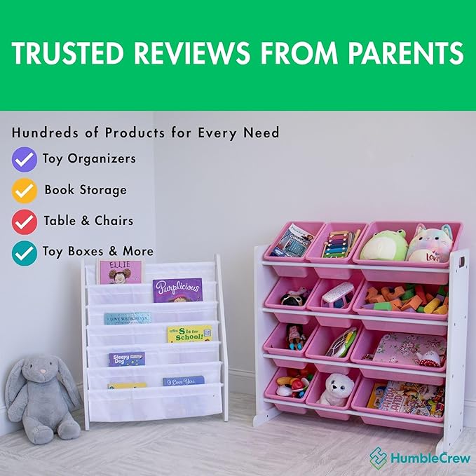 Humble Crew Kids Toy Storage Organizer with 12 Plastic Bins, White/Pink – Removable Bins for Playroom, Bedroom, Toddler Furniture for Boys and Girls Ages