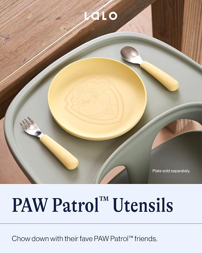 Lalo PAW Patrol Utensils - Toddler Fork and Spoon Set - Stainless Steel and Silicone Ergonomic Toddler Utensils - Children Safe Flatware Set - 2 Pieces - Rubble