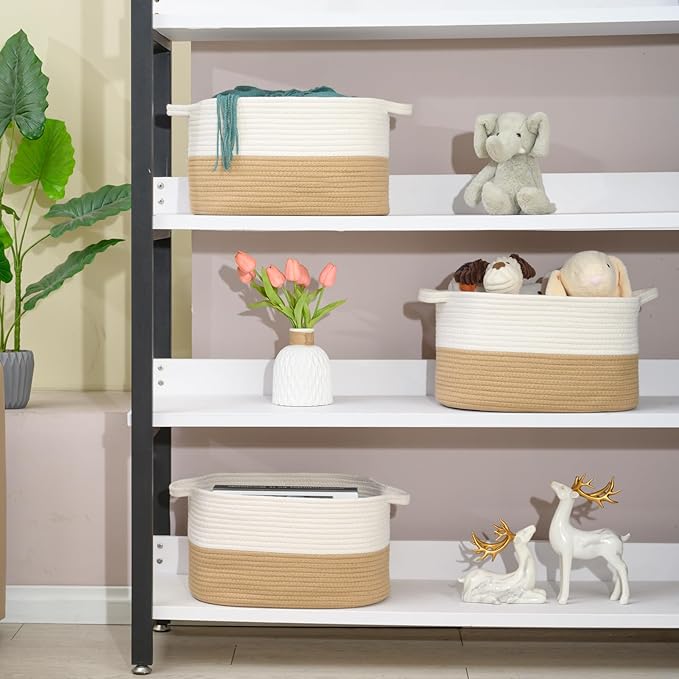 - 【Specifications】The baby basket is a two-color matching storage basket, 3-piece set. The baskets for organizing has two handles and is woven with cotton rope. Storage baskets size (length, width and height) is 15x10x8.7 inches, the size is moderate, belongs to the medium storage basket.