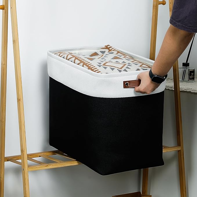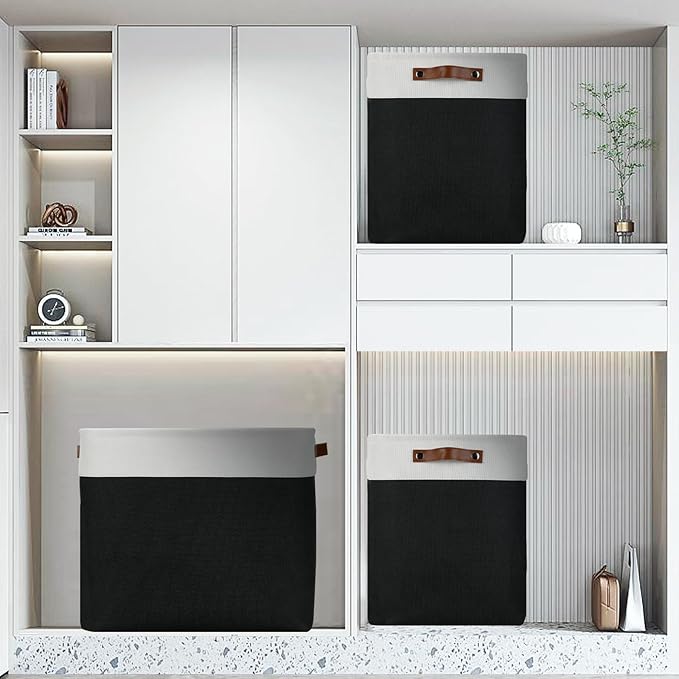 DULLEMELO Fabric Storage Baskets 3 Pack - 17x12x15 inch Large Foldable Fabric Organizer for Storage Decorative Storage Bins for Home,Closet(White&Black)