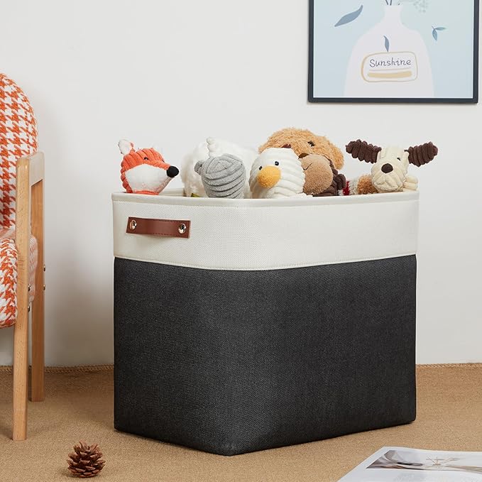 DULLEMELO Extra Large Storage Baskets, Fabric Storage Bins for Organizing Shelves Nursery Toys Books, Closet Baskets and Bins with Handles, White&Black 2-Pack