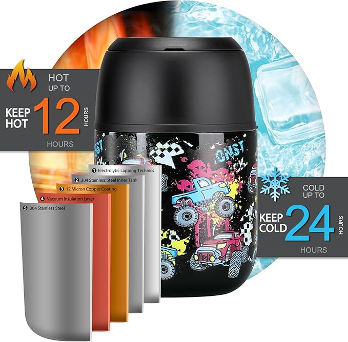 - Joopetalk soup thermo comes with double-wall vacuum insulation technology, that can keep food hot for 12 hours & keep food cold for 24 hours.