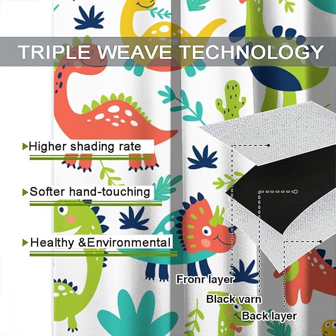Rustic Dinosaurs Curtains Colorful Dino Kids Boys Cartoon Cute Cool Funny Decor Printed Blackout Rod Pocket Window Drapes for Living Room Bedroom W31.5xL63in 2 Panels