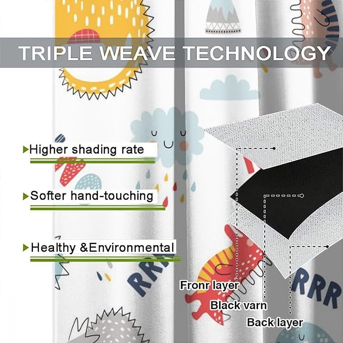 Cartoon Dinosaur Curtains for Kids Boys Girls Home Decor Colorful Cute Dino Animals Print Pattern Rod Pocket Blackout Window Drapes for Nursery Baby Bedroom Playroom W27.5xL63in 2 Panels