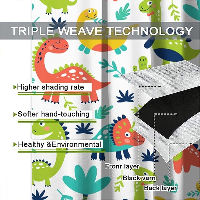 Rustic Dinosaurs Curtains Colorful Dino Kids Boys Cartoon Cute Cool Funny Decor Printed Blackout Rod Pocket Window Drapes for Living Room Bedroom W36xL63in 2 Panels