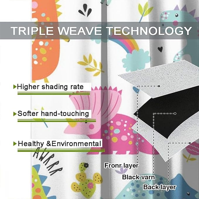 Cartoon Dinosaur Curtains for Kids Boys Girls Home Decor Childish Cute Dino Animals Print Pattern Rod Pocket Blackout Window Drapes for Nursery Baby Bedroom Playroom W31.5xL63in 2 Panels