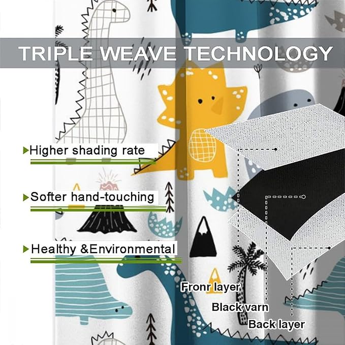 Kids Dinosaur Curtains for Boys Girls Bedroom Decor Cartoon Dino Colorful Cute Funny Wildlife Animal Printed Blackout Rod Pocket Window Drapes for Baby Nursery Playroom Living Room W42xL84in 2 Panels