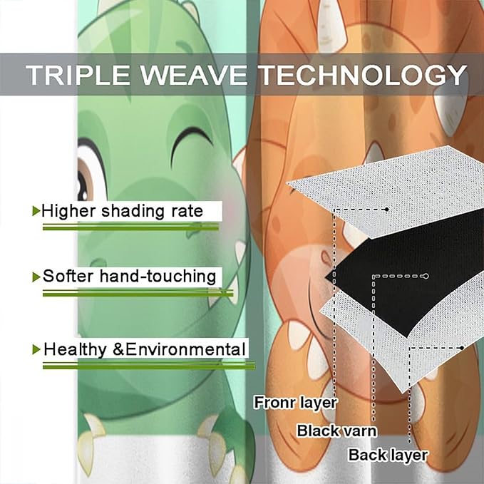 Kids Dinosaur Curtains for Boys Girls Bedroom Decor Cartoon Dino Colorful Cute Funny Animal Printed Blackout Rod Pocket Window Drapes for Baby Nursery Playroom Living Room W26xL84in 2 Panels