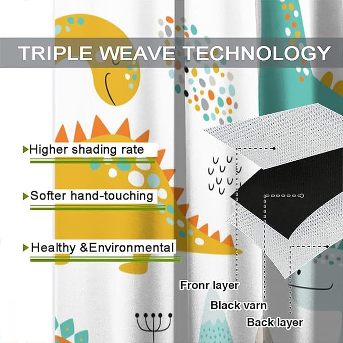 Dinosaur Curtains for Kids Boys Girls Home Decor Childish Cute Dino Animals Print Pattern Rod Pocket Blackout Window Drapes for Nursery Baby Bedroom Playroom W31.5xL72in 2 Panels