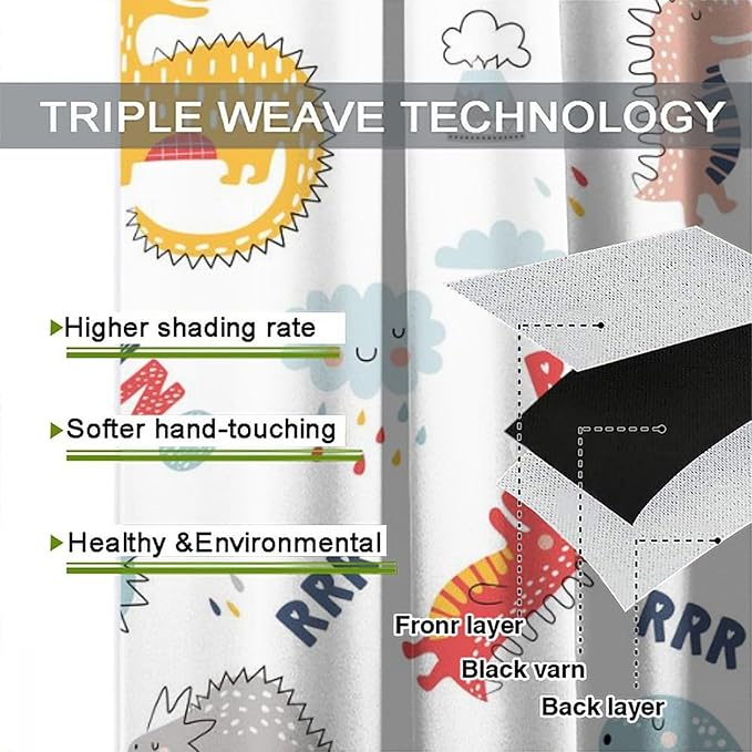 Cartoon Dinosaur Curtains for Kids Boys Girls Home Decor Colorful Cute Dino Animals Print Pattern Rod Pocket Blackout Window Drapes for Nursery Baby Bedroom Playroom W21xL54in 2 Panels