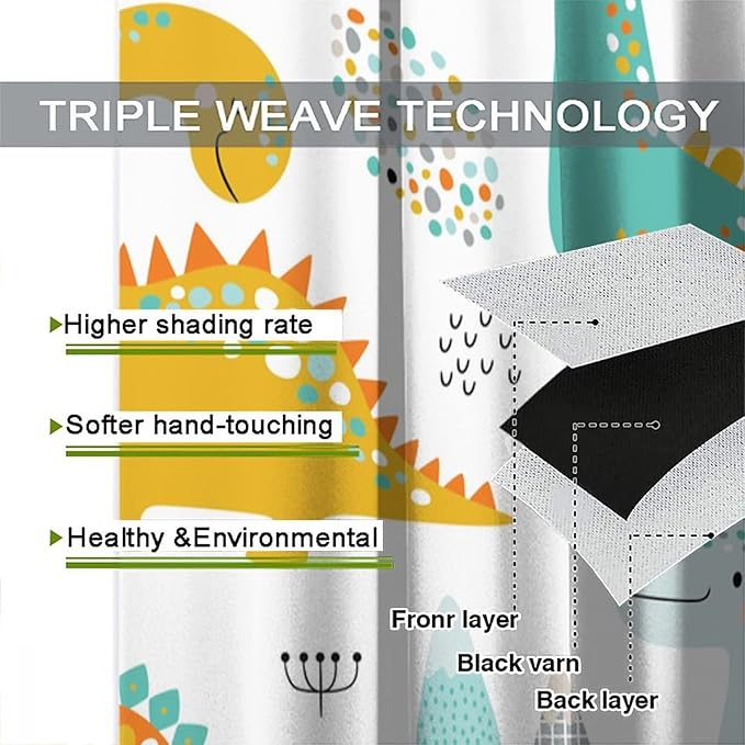 Dinosaur Curtains for Kids Boys Girls Home Decor Childish Cute Dino Animals Print Pattern Rod Pocket Blackout Window Drapes for Nursery Baby Bedroom Playroom W27.5xL63in 2 Panels