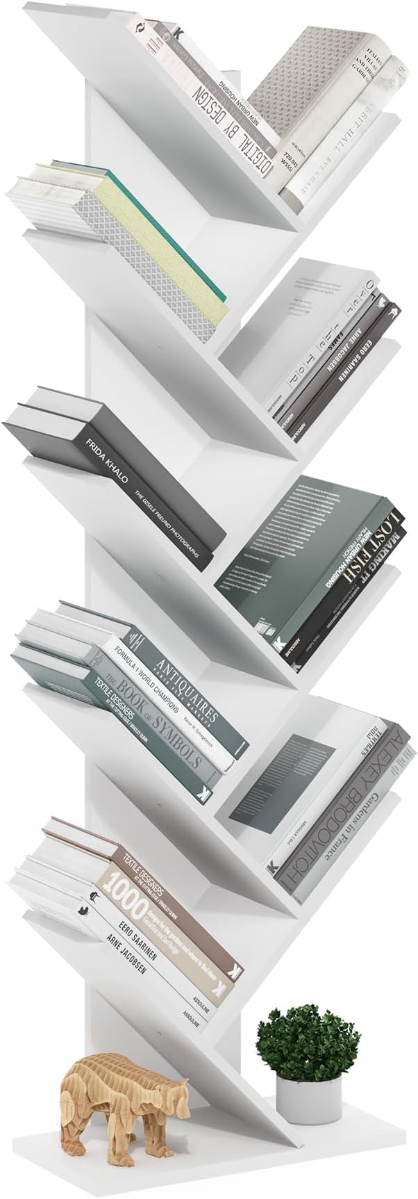 - Unique and modern bookshelf with a tree design, this bookshelf features 9 tiers to accommodate plenty of your book collections.