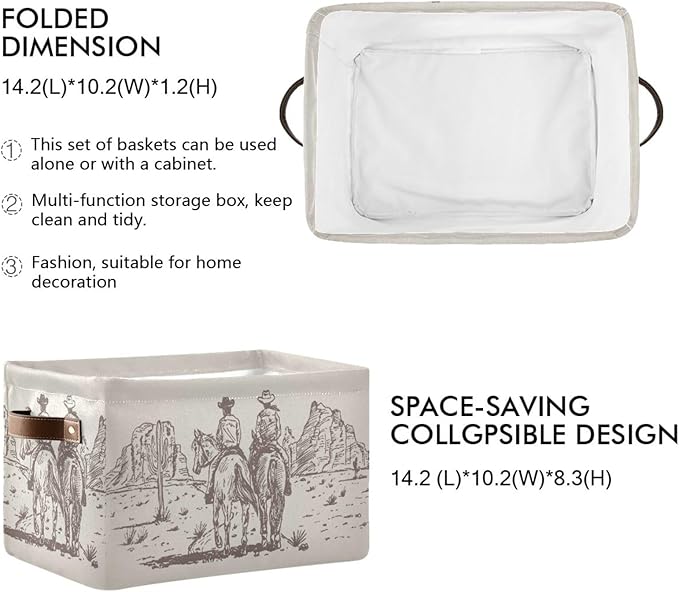Western Desert Cowboy Storage Basket Cube Storage Bins Organizer Bag Collapsible Closet Shelf Baskets with handle for Baby Cloth Pet Toy Book 14.2×10.2×8.3 IN