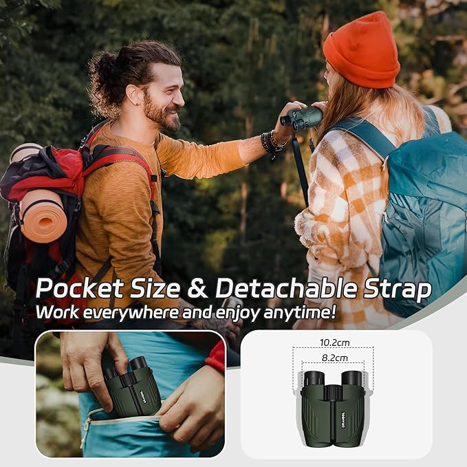 • [Portable and Multi-scenario]This compact and lightweight binoculars for hunters cruise ship weighs only 0.6 pounds, making it very convenient to carry in a backpack or pocket. It can be easily carried along for bird watching, hunting, hiking, travel, theater, opera, concerts, etc. It is a perfect small binoculars for adults, children, and the elderly. The bird watching gifts to give to family, friends, and children on holidays such as Christmas, birthdays, and anniversaries.