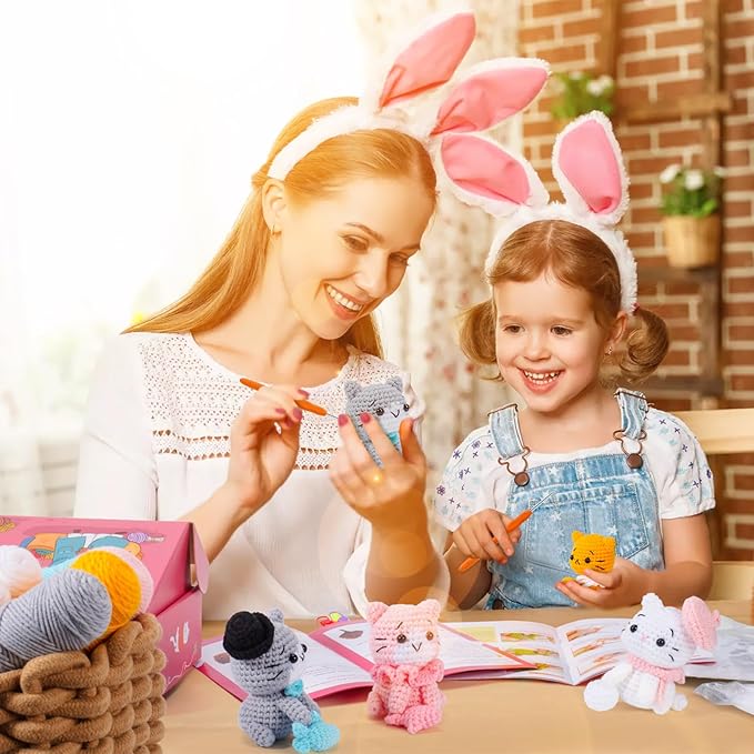 - CROCHET ANIMAL KIT: The crochet starter kit could crochet 4 cute cats with its hats, toy, and fish, designed for animal lovers and loved by many. It will gently heal your heart as you crochet