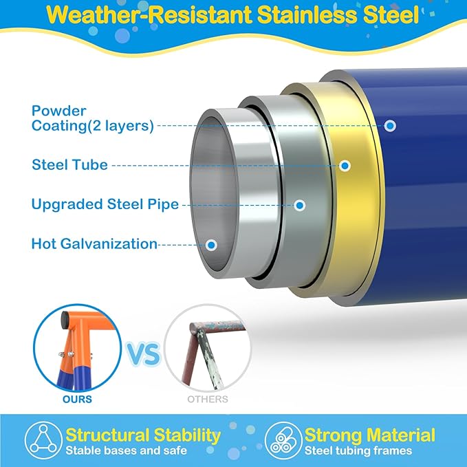 - Safe and Comfortable: The swing sets for backyard feature a U-shaped design, providing a comfortable fit for children. With rubber-covered swing chains and child-friendly bolt caps, we prioritize optimal protection for your little ones