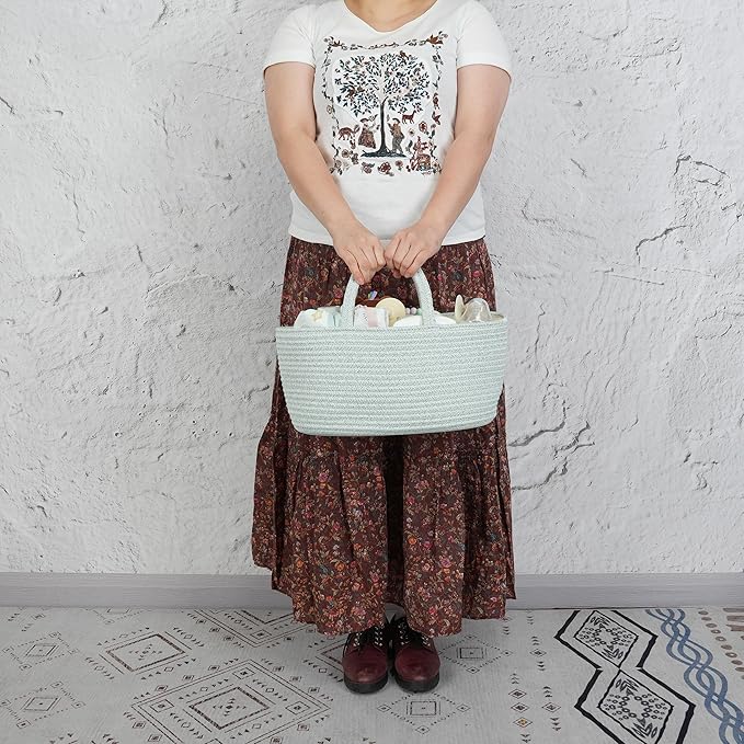 Diaper Caddy Organizer Cotton Rope Baby Basket Nursery Storage and Portable Tote Bag for Car Ideal Baby Shower Gifts and Registry Must-Have for Newborn Essentials light green