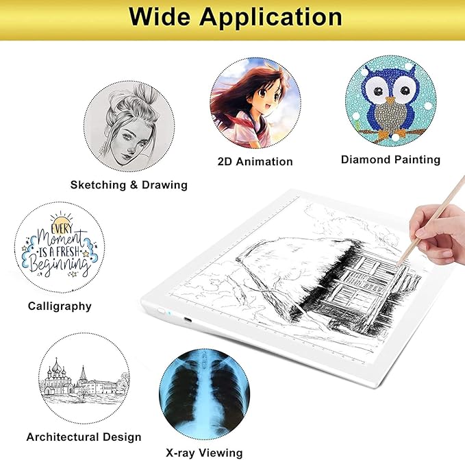 - 【WIDE APPLICATION】 Ideal for diamond painting, stenciling, 2D animation, calligraphy, embrossing, scrapbooking, tattoo transferring, sketching & drawing, streaming, sewing projects, stained glass, quilting etc. A perfect tool for anyone who needs to do tracing work, or for your kid if you want to develop his talent of drawing and also the amazing gift for Children's Day, Christmas, birthdays or any other holidays.