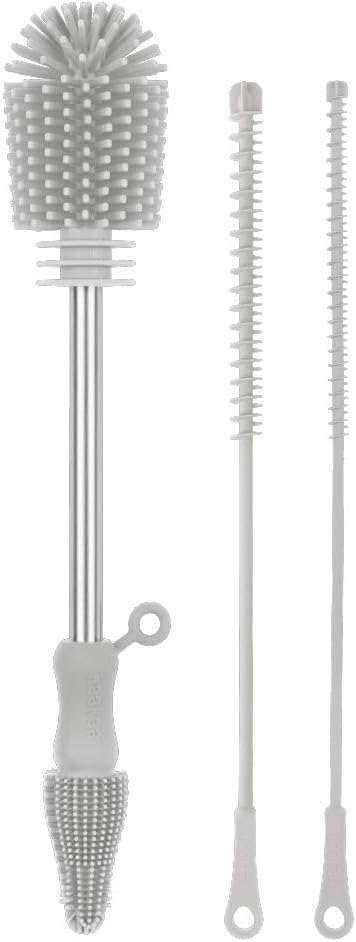 Haakaa Silicone Cleaning Brush Kit – Household Cleaning Brushes for Bottles and Crevices – Food-Grade Silicone: Dishwasher Safe (Kit-Grey)