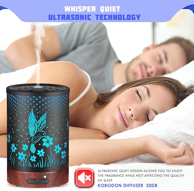 Essential Oils Diffuser,Aromatherapy Diffuser,Birthday Gifts for Women Mom Grandma,Metal Cool Mist Humidifier with 7 Colors Lights Waterless Auto Off Air Diffusers (C-Hummingbirds)