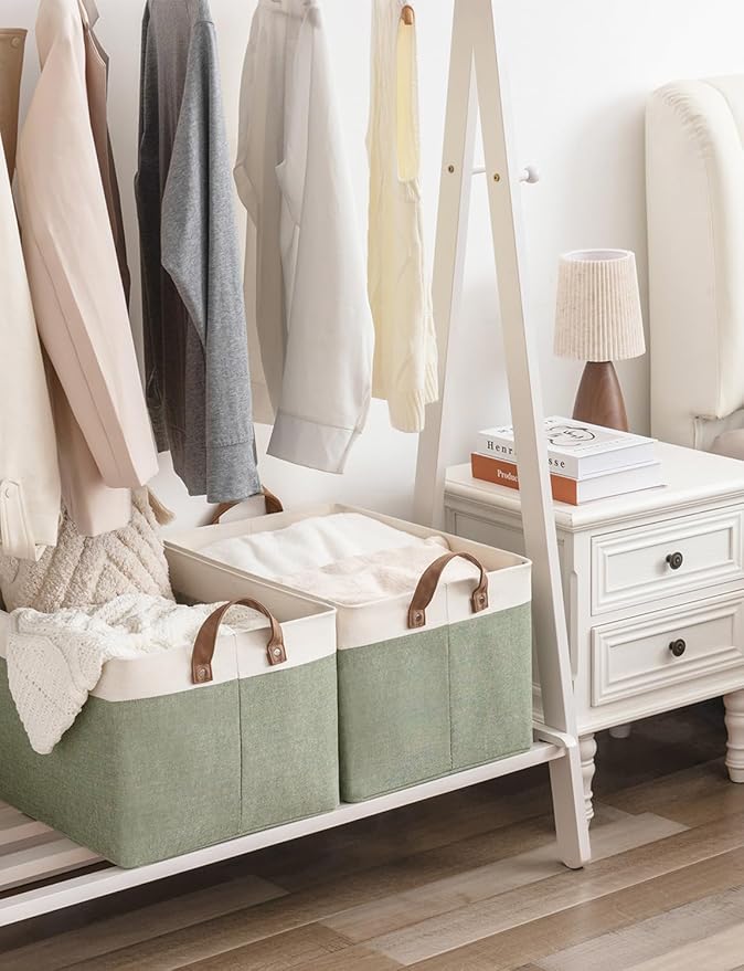 StorageWorks Storage Bins, Fabric Storage Bins for Shelves, Extra Large Storage Baskets with Metal Frame, Closet Baskets and Bins with Handles, Jumbo, Green and White, 2-Pack
