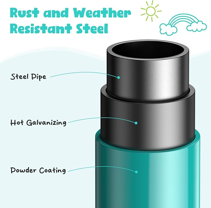 - 【Sturdy Playset】Constructed from 65 rust-resistant steel tubes, this heavy-duty outdoor climbing dome can support up to 800 lbs. (Max weight capacity for single tube is 133 lbs) The top five blue poles use thicker tubes for enhanced support