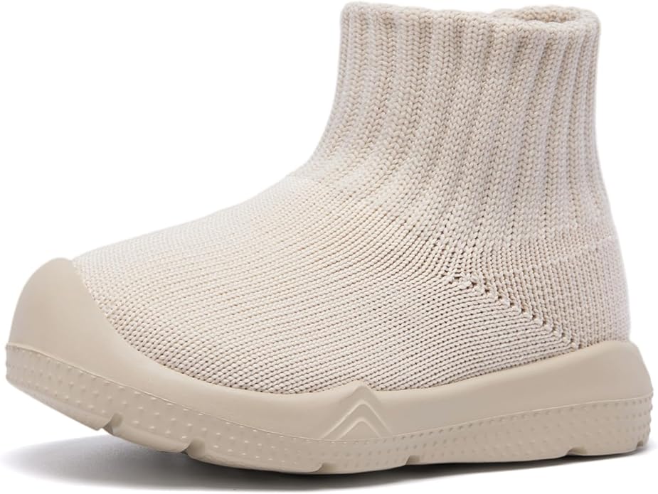 - Friendly Sock-like Upper: Sock-like stretchy textile construction upper hugs the foot to keep them comfortable and flexible when babies are on the move. Baby sock shoes made of soft fabric knit are also friendly to the skin, healthy, and very safe for infant babies.
