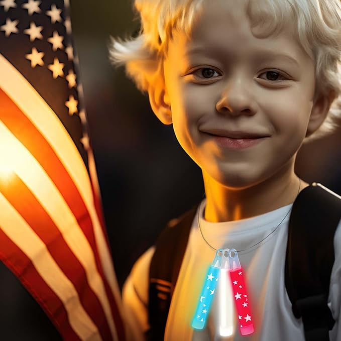 Glow Fever Bulk 100ct Red White Blue 4" Glow Sticks, Glow in The Dark, Light Sticks for 4th of July Party Supplies National Memorial Day Party Favors Fireworks Accessory Game Prizes or Treats
