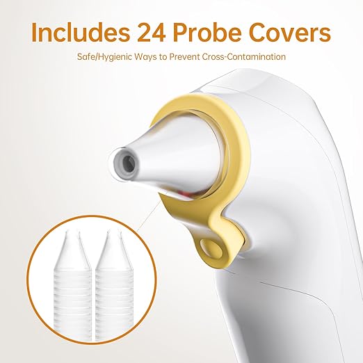 - NON CONTACT AND MORE HYGIENIC : No contact with the probe during temperature measurement, built-in 24 replaceable disposable ear cushions, replace the ear cushions before each temperature measurement to prevent mutual infection among family members