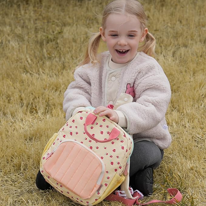 - 🍓【Attractive mini kids backpack】:GAGAKU kids backpack is made of high quality cotton-polyester blend, Made of high quality and harmless materials, it is comfortable and lightweight, so that children can carry it with more peace of mind,personalised backpack for girl boy with pink strawberry print, easy to clean, 11x9x3.5inch, 0.72pounds, perfect for girl aged 2 to 5 years old.