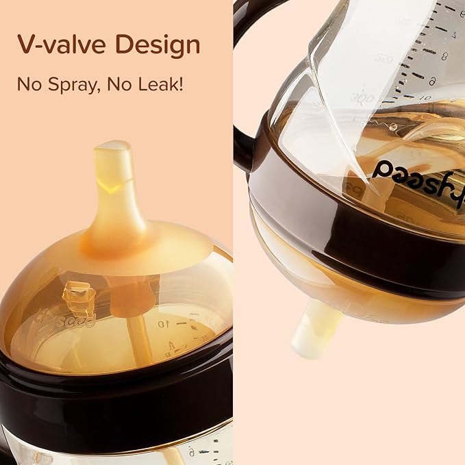 - VALVED TIP NON SPILL: Our spill proof spout is soft and squeezy as mom, designed to be gentle on gums while gradual learning, easing the transition messes from bottle to sipicup.