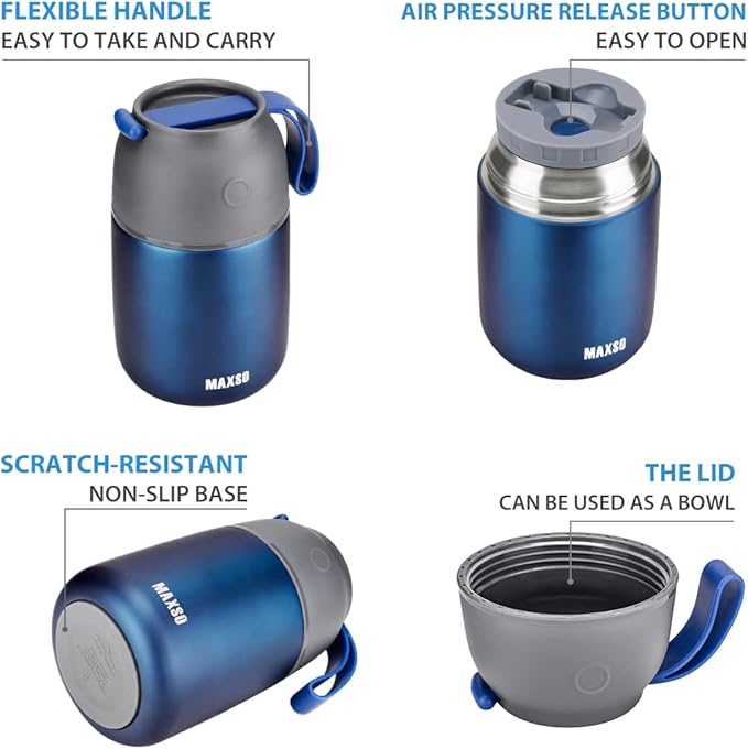 - 【Superior Vacuum Insulation】Keeping your soup hot, it can be an easy thing!!! Durable insulated thermal technology maintains temperatures for longer, interior is constructed entirely of food-grade stainless steel, keeping food hot up to 12 hours or cold for 24. Whether in school or in the office, you can always enjoy hot food and soup during lunch time! It is suitable for babies, toddlers, children, girls, boys, adults and the elderly, perfect for school, office, travel, camping, gym, home.