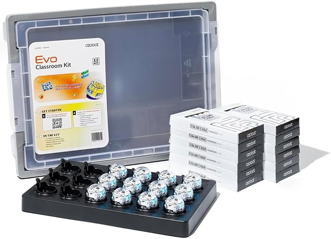 - ROBUST CLASSROOM CODING SOLUTION: The Evo Classroom Kit is a comprehensive solution for grades K-12 STEAM (Science, Technology, Engineering, Arts, Math) education, featuring 12 Evo robots. This kit stands out by offering a complete set of tools for educators to introduce coding in a fun, interactive way, making it superior to other educational robotics kits.